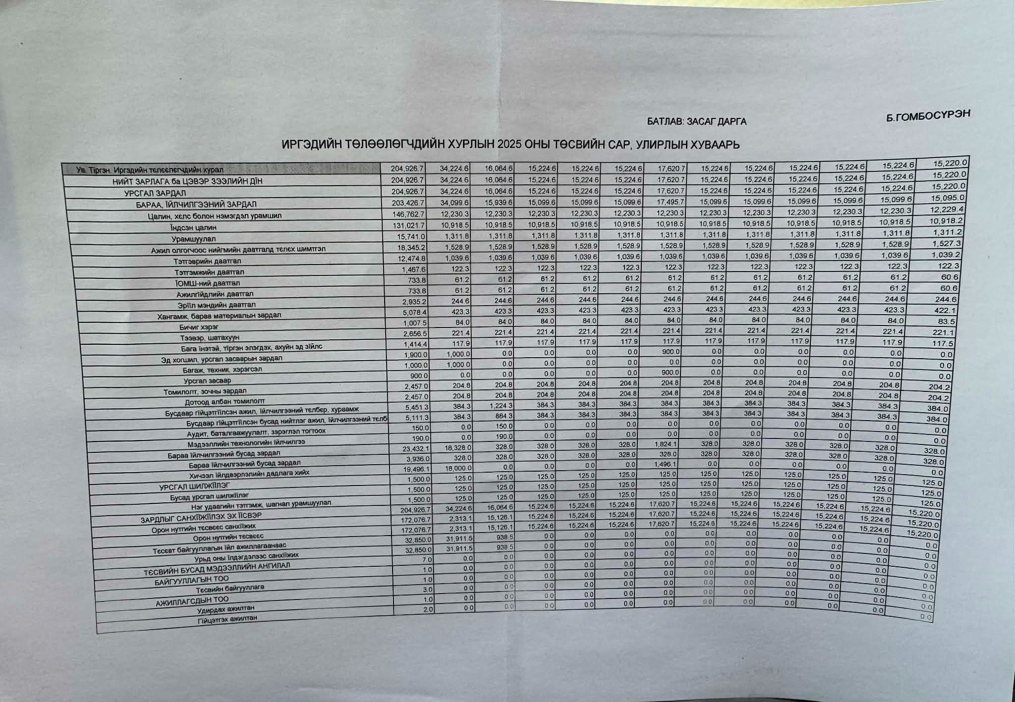 Иргэдийн Төлөөлөгчдийн Хурлын 2025 оны төсвийн сар, улирлын хуваарь